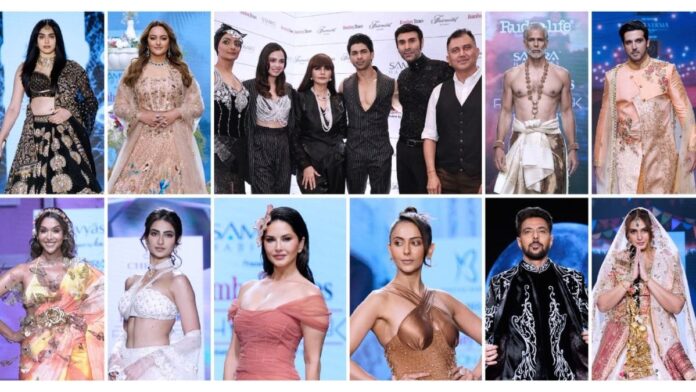 The final day was a testimony to elegance, innovation, and drama: Padm by Roopa opened with a glowing Gauahar Khan and Tahir Shabbir captivating the audience. Designer Chhavvi Aggrawal merged grace and sophistication, with Karishma Tanna embodying elegance as her showstopper. Nishtha Bansal brought fluidity to the ramp with occasion wear, elevated by the dazzling Rakul Preet Singh. The day’s vibrance continued; Kiaayo by Shweta celebrated minimalist everyday chic with Hina Khan exuding confidence on the runway. NIF Global, Vashi enthralled with a dynamic show featuring Tina Ahuja, Shiv Thakre, and Sunny Leone, whose stunning finale brought high energy and glamour. Menswear took center stage with Raymond presents Chairman’s Collection, with Ranveer Brar and Gautam Singhania redefining refined masculinity. The grand finale was presented by Samira Habitats in collaboration with Shyamal & Bhumika. Their opulent bridal couture closed the event in majestic style, with Khushi Kapoor gracing the runway as the ethereal showstopper, leaving the audience in awe.